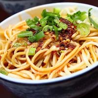 凉面 - liángmiàn - n kalte Nudeln Diese auch 冷面 (lěngmiàn) genannten Nudeln werden unter anderem mit Sesamsoße angemacht, was dem Gericht eine angenehm süßlich-nussige Note verleiht. Liangmian sind vor allem im Sommer ein erfrischender Snack. |